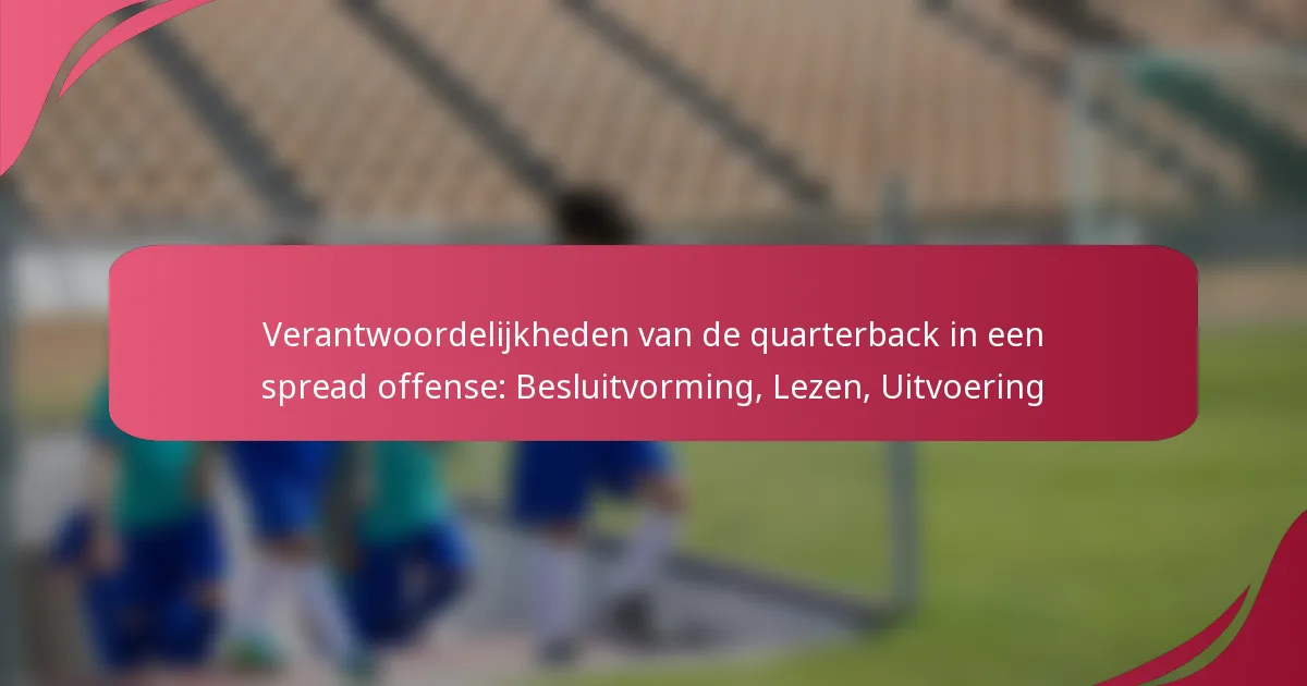 De kernverantwoordelijkheden van een quarterback in een spread offense omvatten het maken van snelle beslissingen, het lezen van defensies en het effectief uitvoeren van plays. Dit offensieve schema benadrukt snelheid en ruimte, waardoor de quarterback wendbaar moet zijn in zowel gedachte als actie om het offensieve potentieel te maximaliseren.