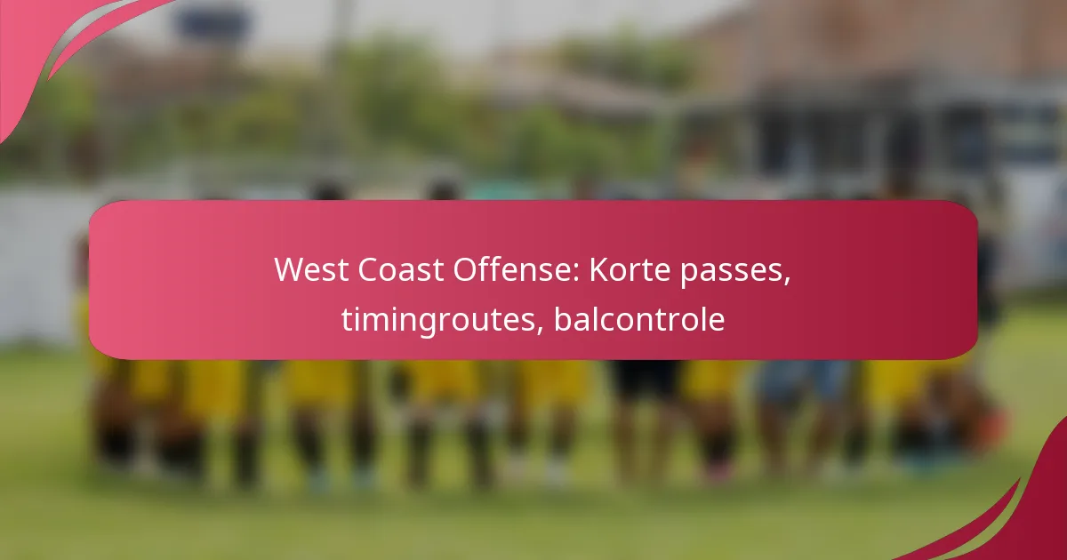 Timingroutes in de West Coast Offense zijn specifieke passingpatronen die afhankelijk zijn van nauwkeurige timing tussen de quarterback en receivers. Deze routes benadrukken korte passes en snelle releases, waardoor efficiënte balcontrole en langdurige offensieve drives mogelijk zijn.
